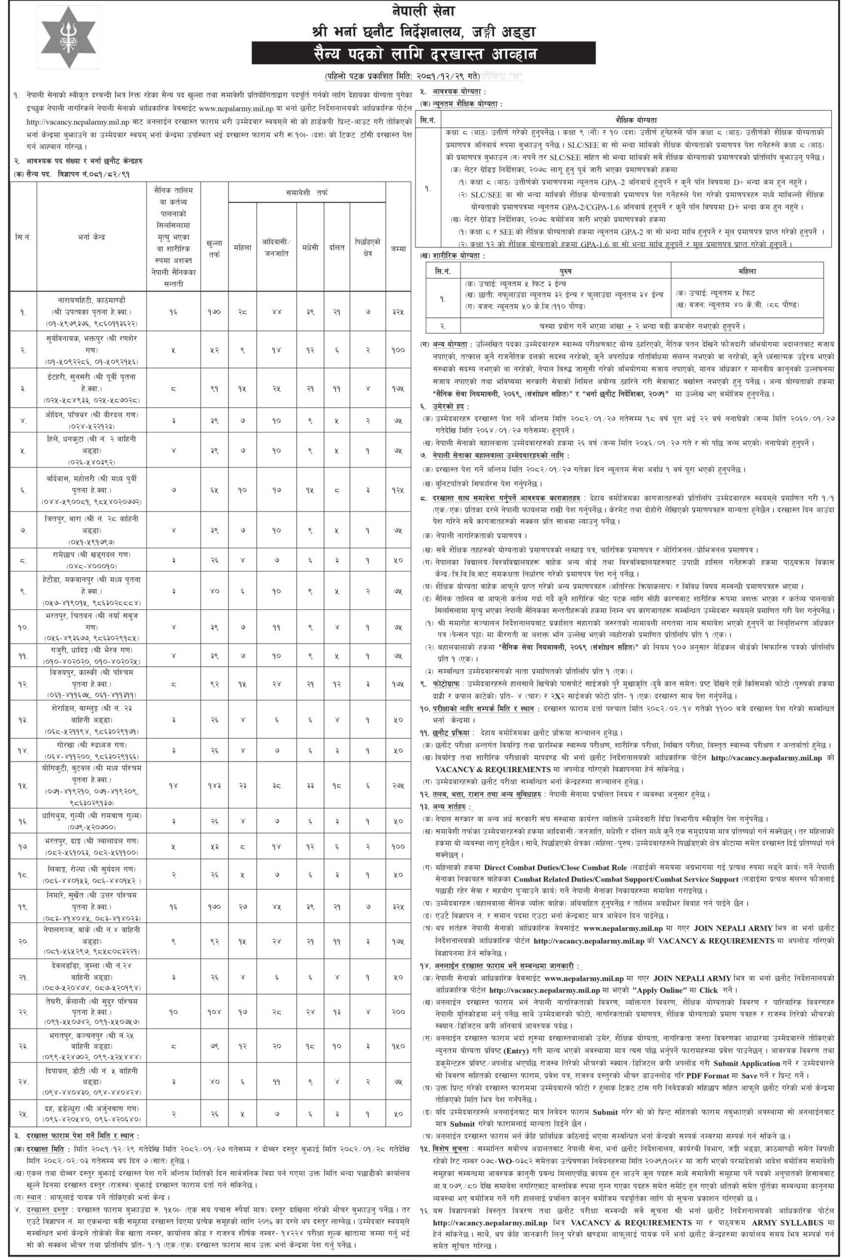 काठमाडौं । नेपाली सेनाले सैन्य पदमा ठूलो संख्यामा भर्ना खुलाएको छ।