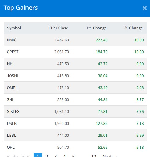 नेप्से घट्दा पनि पाँच कम्पनीको शेयर मूल्यमा सकारात्मक सर्किट