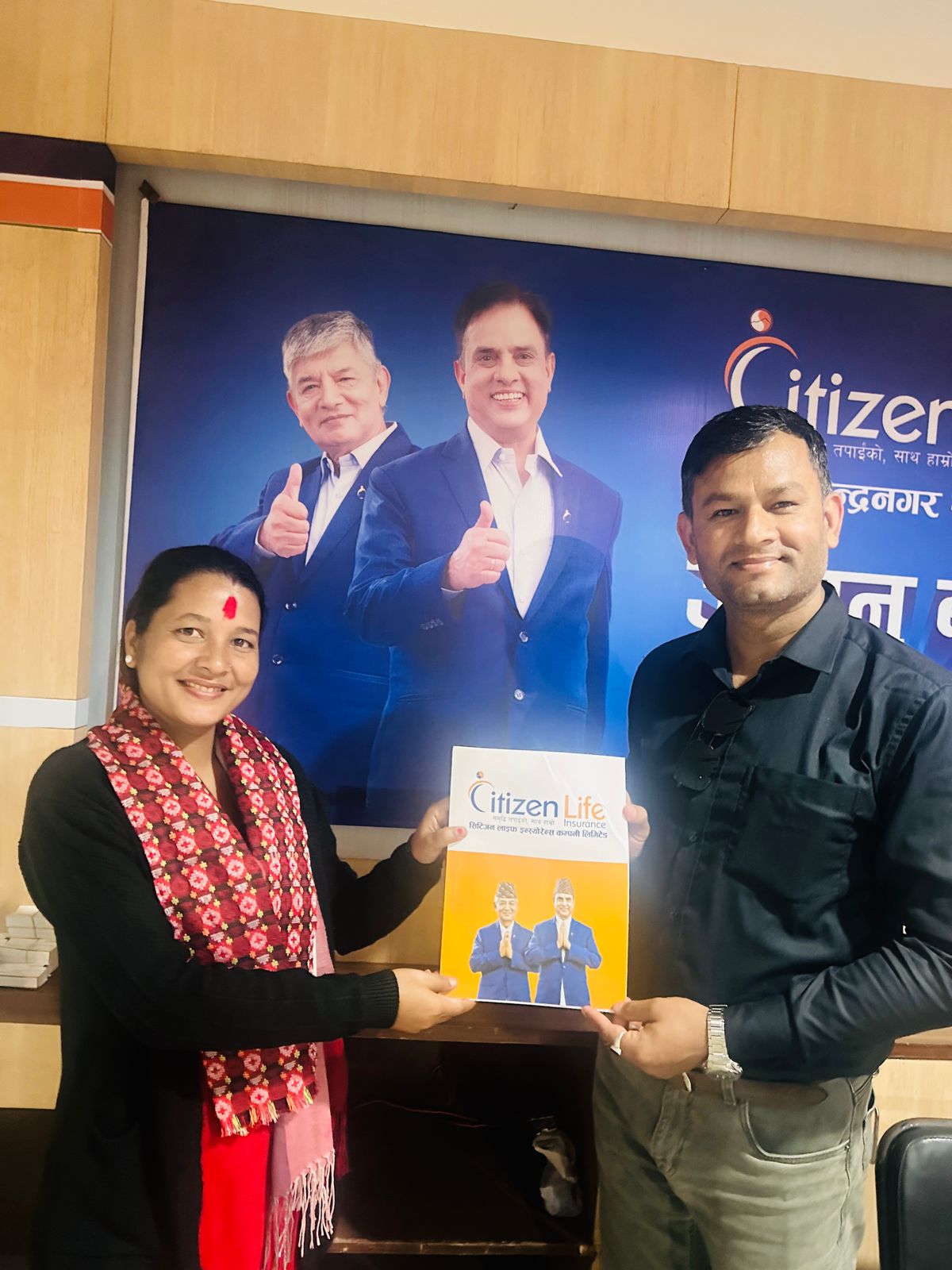 यसैक्रममा, बीरेन्द्रनगर नगरपालीका ०९ नीवासी दिनेश पोखरेलले चैत्र ४ गते आफ्नो श्रीमतीको सुशीला न्यौपानेको ३५ औं जन्मदिनमा सिटिजन लाइफ इन्स्योरेन्स कम्पनी बीरेन्द्रनगर शाखाबाट रू १५ लाखको जीवन पोलीसी उपहार दिएका छन् । पोलीसी अवधी सकीएपछी बीमाङ्क रकम र बोनस पाइसकेपछी पनी बीमा चालु रही बीमीत जीवीत भएमा ७० बर्ष उपरान्त त्यही आज लिएको पोलीसी ले पेन्सन जस्तै गरी ५र५ बर्षमा बीमाङ्कको २० प्रतिशतले हुन आउने रकम दिनेहुनाले बुढेशकालमा सन्तानले नहेरे पनि यो बीमालेख ले हेर्छ भन्दै उपाहार दिएका हुन् ।