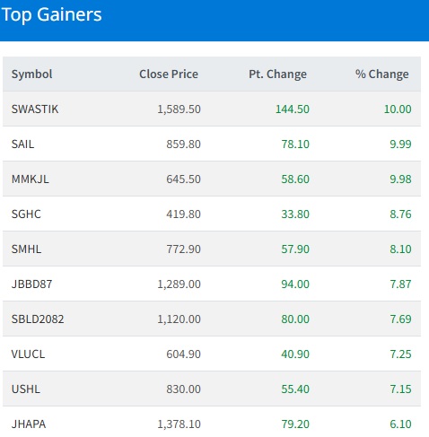 यो दिन बजारमा १४८ कम्पनीको शेयरभाउ बढेको छ भने १०१ कम्पनीको घटेको छ। आज ९ कम्पनीको शेयरभाउ स्थिर रहेको छ। आज ३ वटा कम्पनीको शेयरभाउमा सकारात्मक सर्किट लागेको छ। स्वस्ति लघुवित्तको शेयरभाउमा १० प्रतिशत तथा श्रीनगर एग्रीटेक र माथिल्लो खोला जलविद्युतको शेयरभाउमा १० प्रतिशतको हाराहारीमा बढेर सकारात्मक सर्किट लागेको छ।
