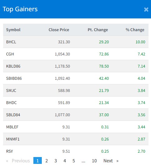 आज सबैभन्दा धेरै विकास हाइड्रोपावरका लगानीकर्ताले कमाएका छन् । आज यस कम्पनीका लगानीकर्ताले १० प्रतिशतका दरले कमाएका हुन् । चन्द्रगिरी हिल्सका लगानीकर्ताले ७ दशमलव ४२ प्रतिशतका दरले कमाएका छन् । एबिएल डिबेञ्चर २०८६ का इकाईधनीले ७ दशमलव १४ प्रतिशतका दरले कमाएका छन् ।