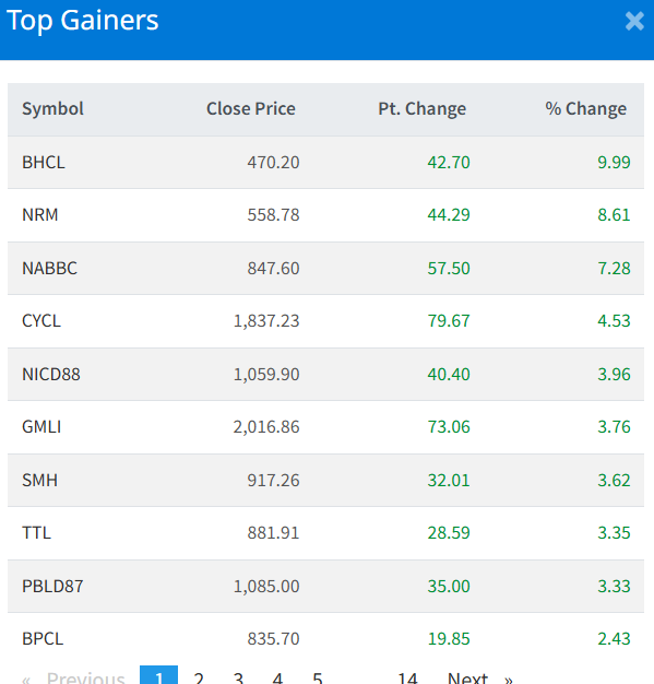 आज सबैभन्दा धेरै विकास हाइड्रोपावरका लगानीकर्ताले कमाएका छन् । आज यस कम्पनीका लगानीकर्ताले ९ दशमलव ९९ प्रतिशतका दरले कमाएका छन् । एनआरएमका लगानीकर्ताले ८ दशमलव ६१ प्रतिशतका दरले कमाएका छन् । नारायणी डेभलपमेन्टका लगानीकर्ताले ७ दशमलव २८ प्रतिशतका दरले कमाएका छन् ।